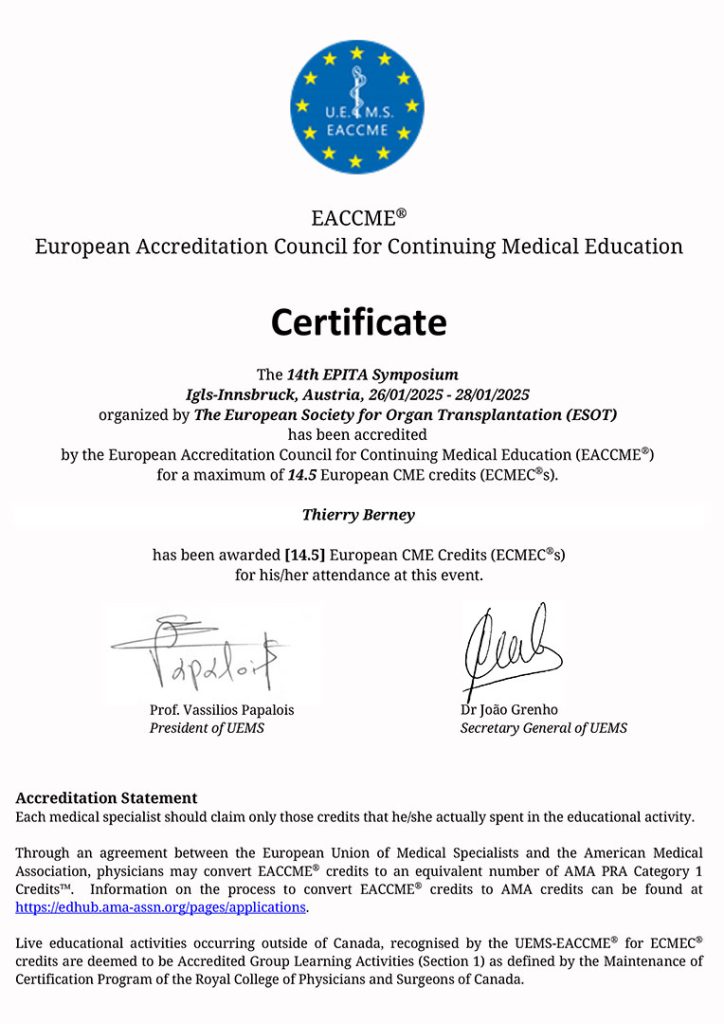 Тьерри Берни – всемирно признанный хирург, онколог и трансплантолог, профессор Женевского университета и главный редактор Transplant International. Его карьера охватывает ведущие клиники США и Европы.